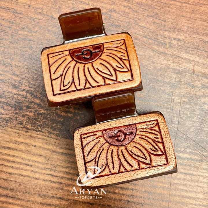 Personalized Handmade Decorative Mini Hair Claw Clips Tooled Engraved Leather Hair Accessories for Women's with Artistic Design
