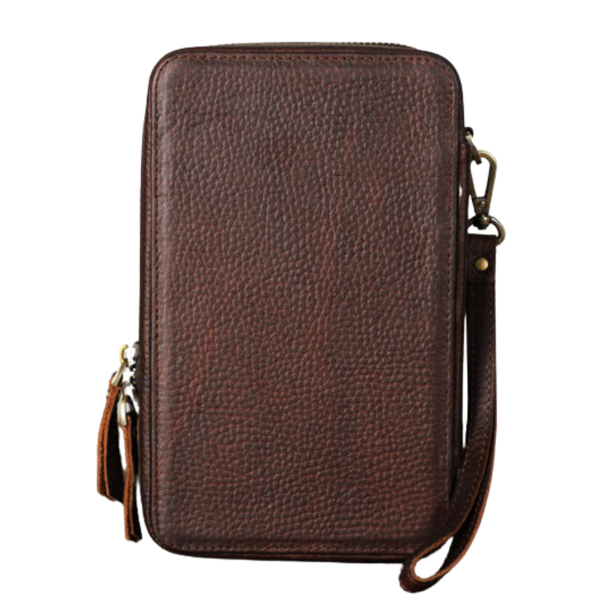 Personalized Handmade Premium Genuine Leather Case Zipper Cable Roll Holder Journey Storage Bag Portable Durable for Earphones