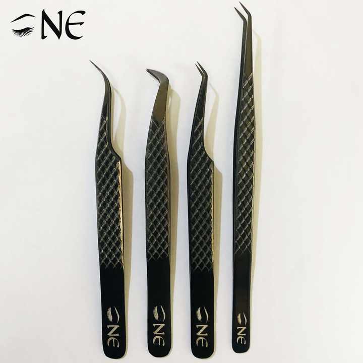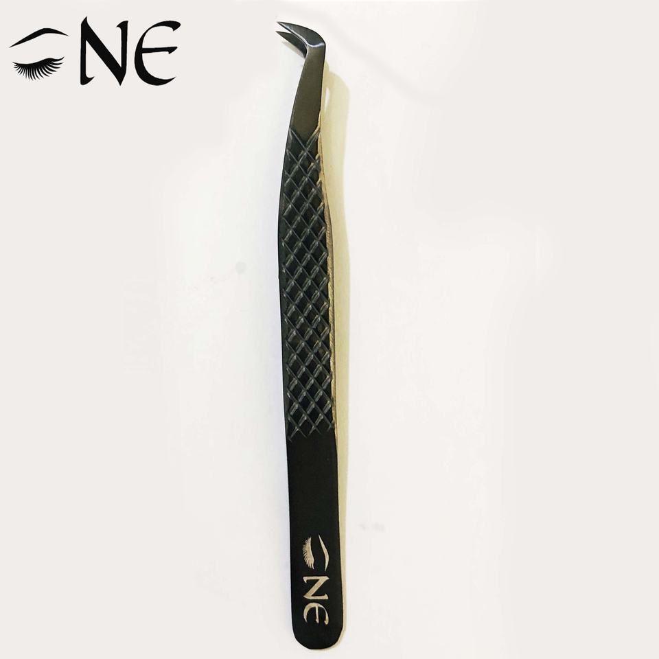Personalized Hard Black Stainless Steel Eyelash Tweezers Pointed Tip Lash Applicator