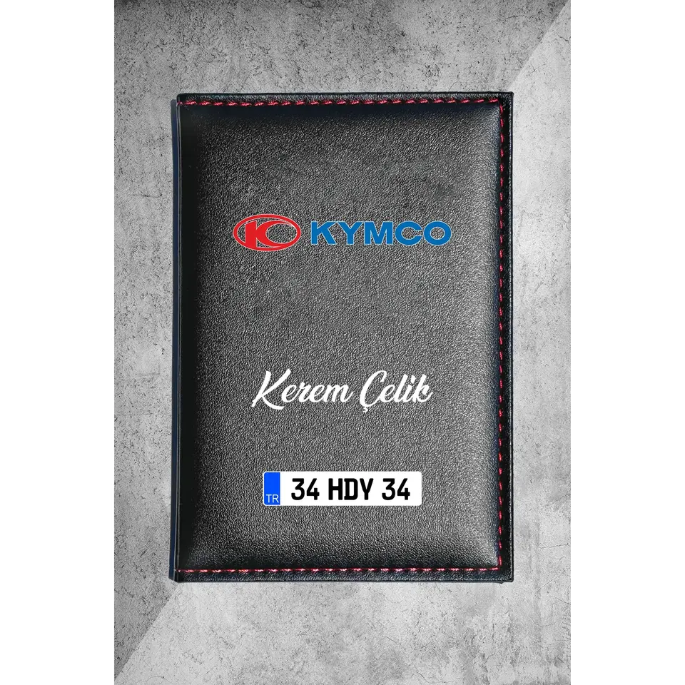 Personalized Kymco Logo Thermo Leather Motorcycle License Plate Holder Frame Accessory
