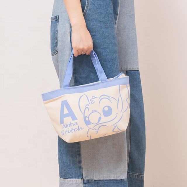 Personalized Large Capacity Handbag Custom Cartoon Print Shopping Tote Bag Canvas With Zipper cotton lunch bag