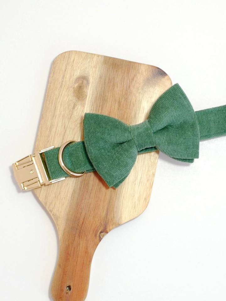 Personalized Dog Collar Set with Bow Tie Green Corduroy Leash Custom for Boy Dogs Wedding Dog Collar