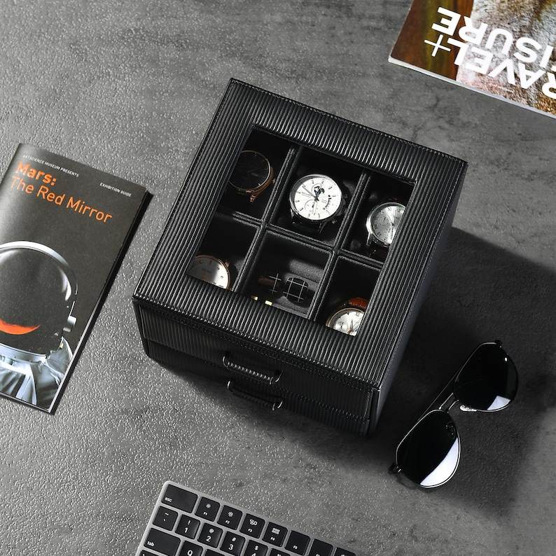 Personalized Leather Shadow Box Watch Organizer Unique Gift for Men Drawer Ring Cufflink Holder for Living Room Office Bedroom