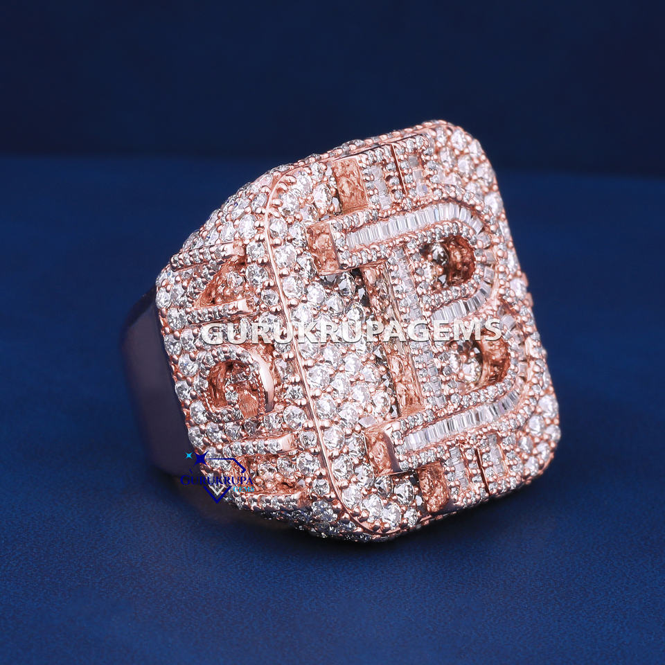 Bold Unique 925 Sterling Silver Wedding Ring Personalized Letter Jewelry Crafted with round and Baguette Moissanite Diamonds