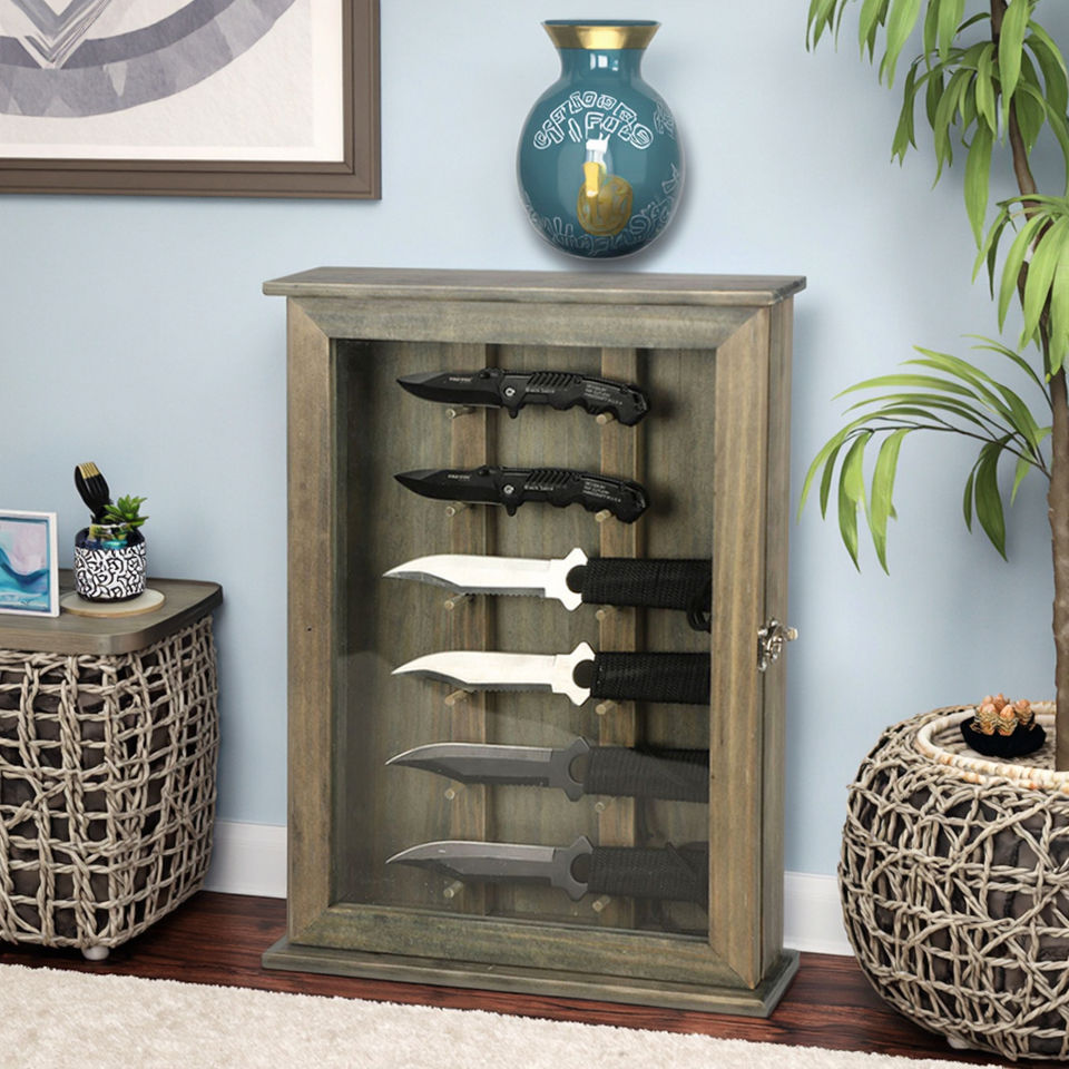 Personalized Lockable Glass Door Wall Knife Display Case Christmas Storage Technique Painted Wood Box for Knives Shadow Box