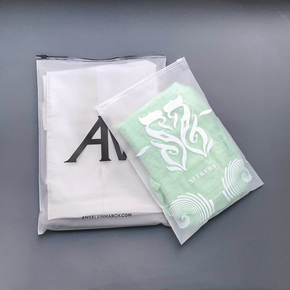Personalized Logo Printed Frosted Zipper Bag Jacket Hoodie Jeans Packing Custom Garment Bag for Online Shop