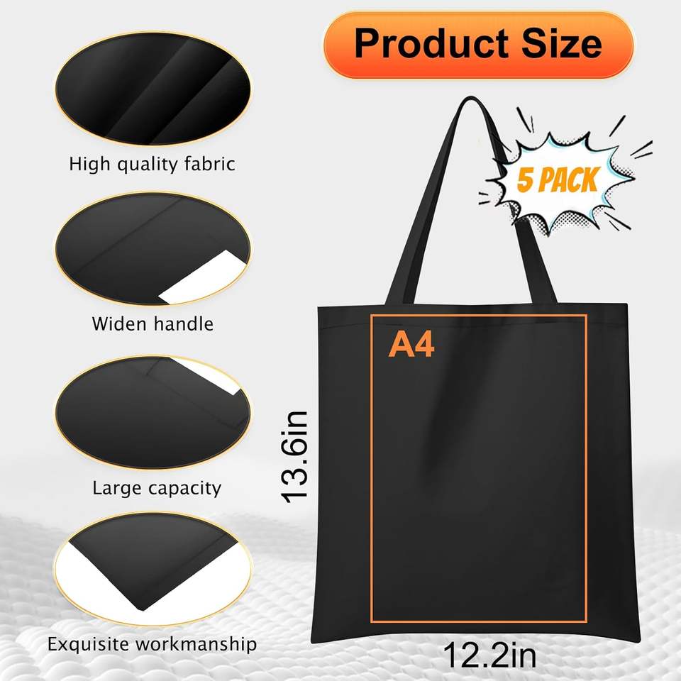 Product name:Logo Recyclable Fabric Shopping Cotton Black Canvas Tote Bags