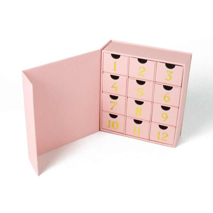 Personalized Luxury Packaging Sostenible Cadeau De Mariage Bridal Gift Box Gold Foil 12 Day Advent Calender Gift Box