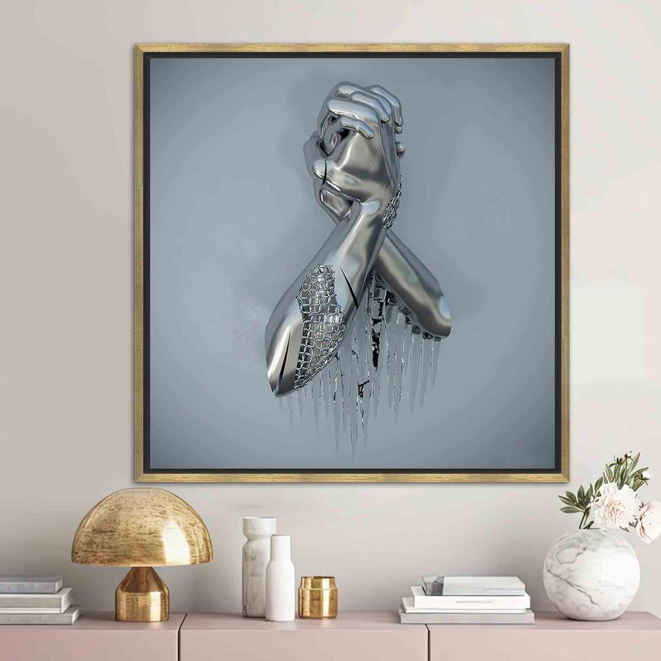 Personalized Metallic Hands Canvas Print: Elegant Silver Wall Art,GOLD FRAMED CANVAS