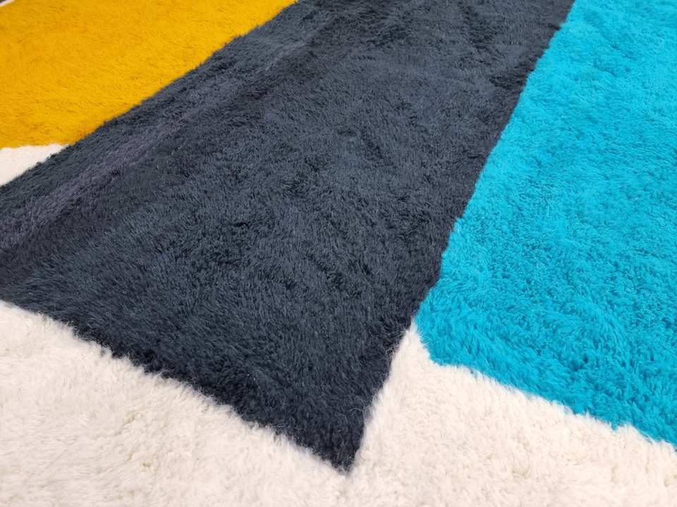 Personalized Moroccan Carpet Berber Rug Mustard and Aqua Blue Abstract Wool Rug Handwoven Gorgeous Beniourain Rug for Home Decor
