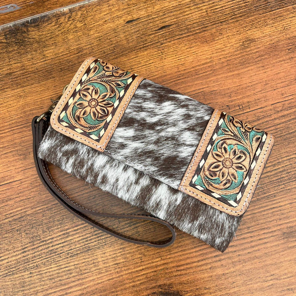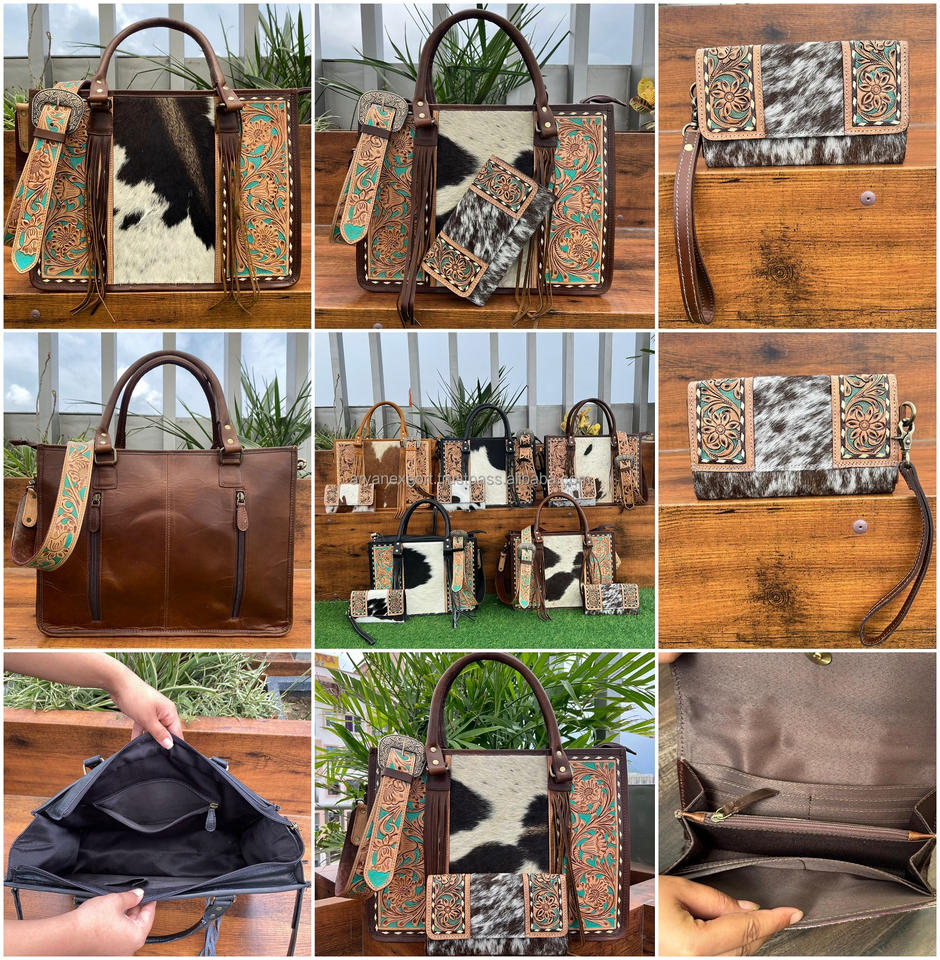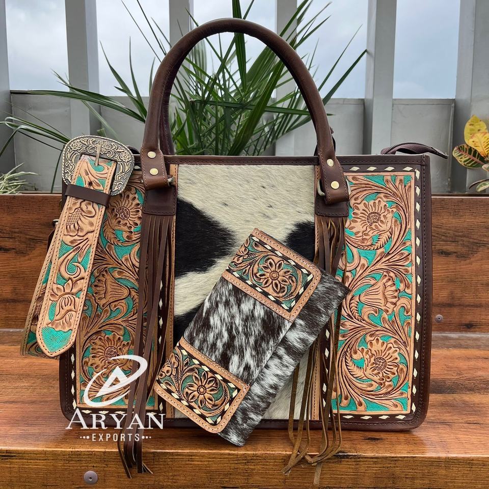 Product Name:Hand Tooled Cowhide Leather 2 Pieces Combo Set