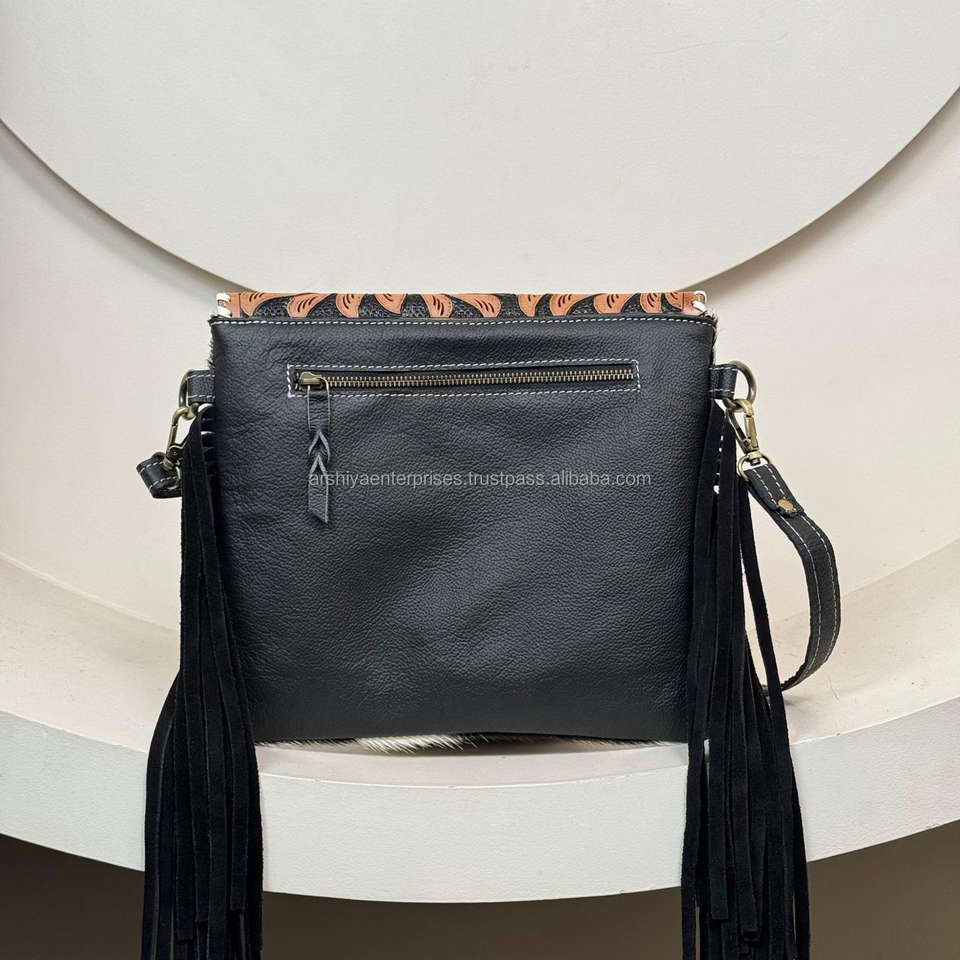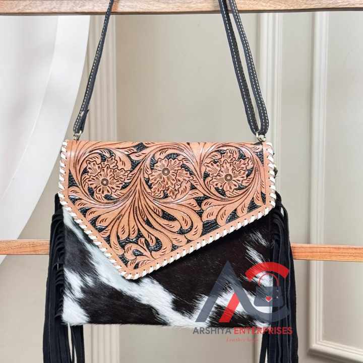 Product name:Hand Tooled Cowhide Leather Fringe Crossbody Bag