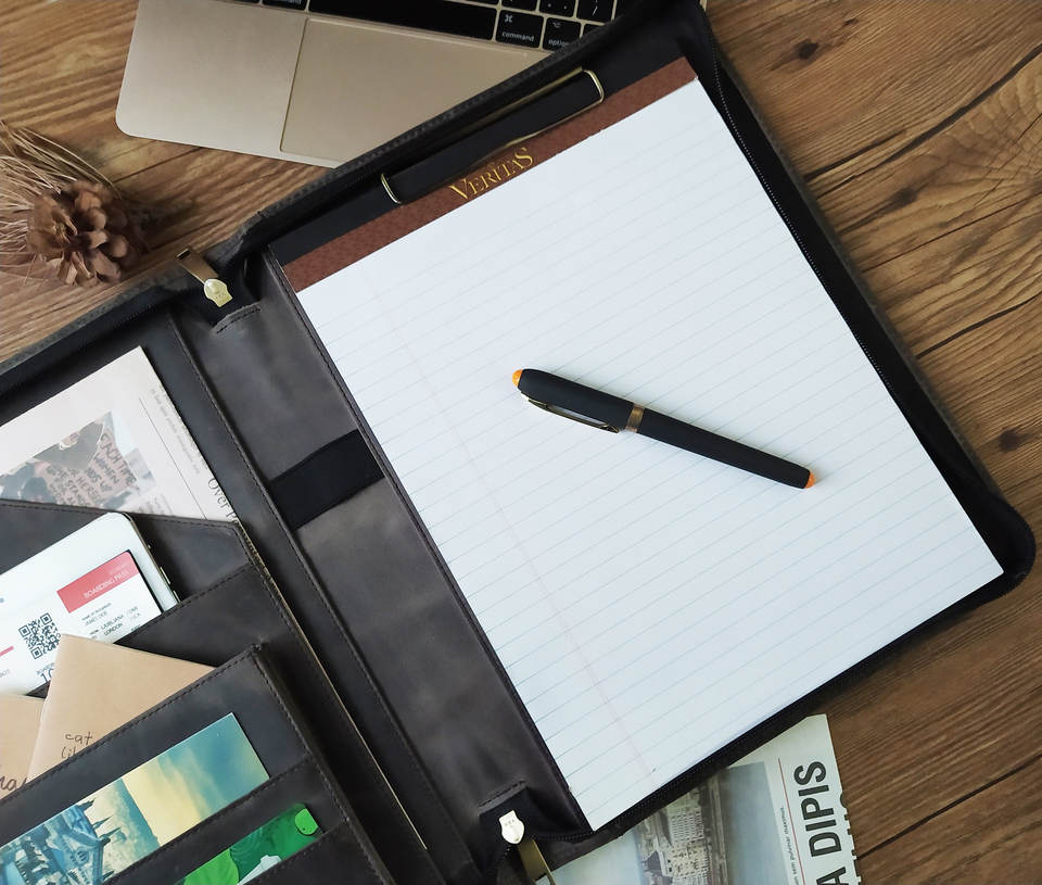 Personalized Office Zipper Case Notebook Storage Organizer Custom Logo Leatherette Portfolio LAP-0010
