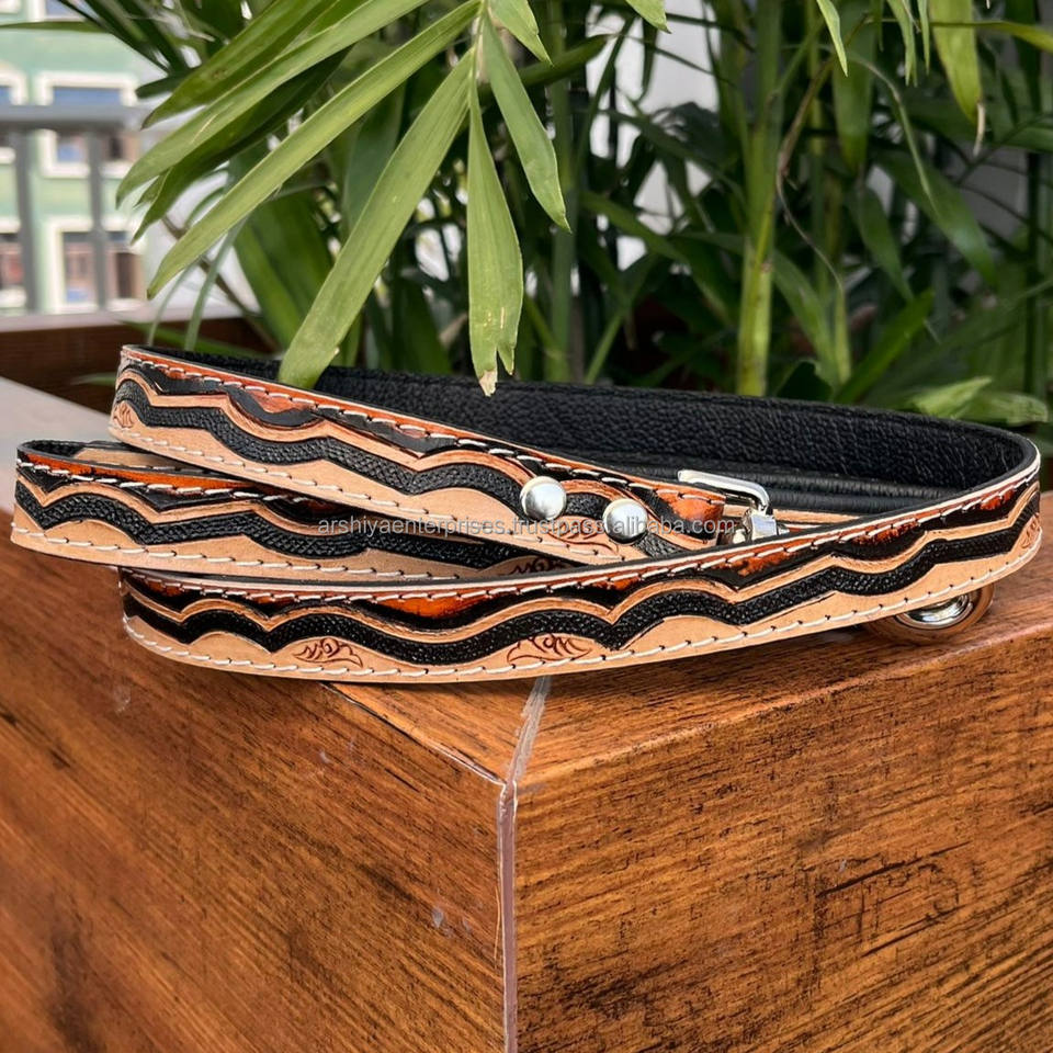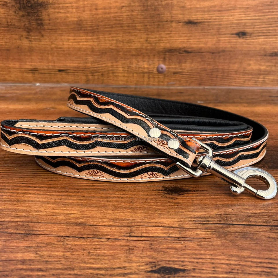 Personalized Pet Accessories Hand Tooled Leather Dog Leash with Comfortable Padded Handle Customizable Genuine Leather Pet Leash