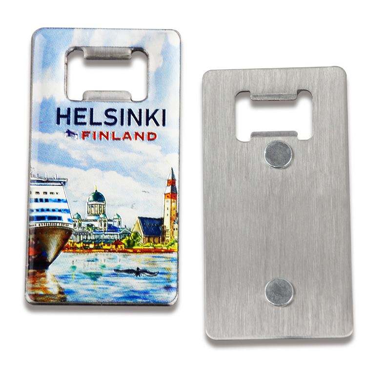 Personalized Photo Engraved Bottle Opener Cities Helsinki Aluminum Foil Beer Cap Magnetic Bottle Opener Fridge Finland Souvenir