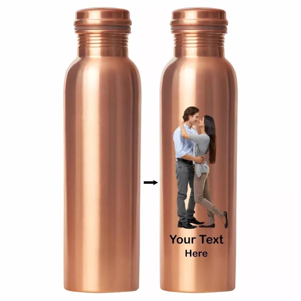 Personalized Photo Pure Copper Water Bottle With Lid For Ayurvedic Health Benefits,Leak Proof Copper Bottle For Drinking Water