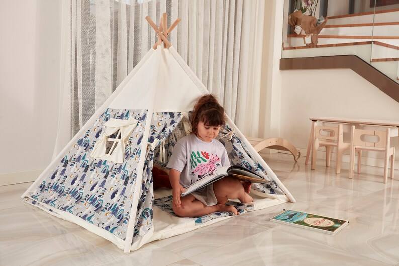 Personalized Classic Wooden Teepee Play Tent and Mat with Polar Bear Design Toy for Kids 2-4 Years