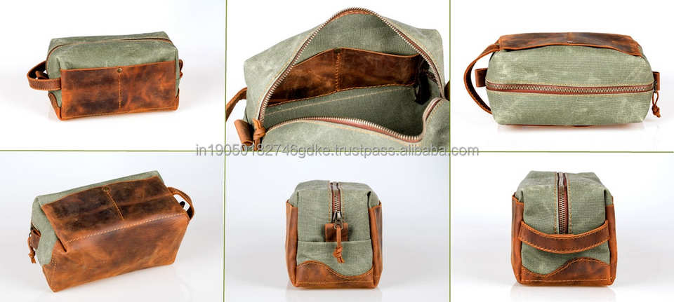 Personalized Portable Travel Bag Zipper Drawstring Double Pocket Cosmetic Pouch for Bag Canvas Real Leather Eco-Friendly