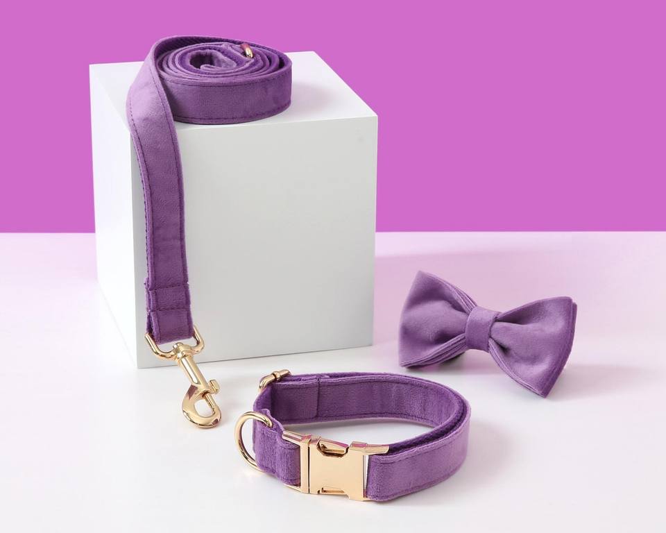 Personalized Purple Collar Leash Set, Custom Wedding Outfit Boy Girl Dog, Gift For Mom And Dog Dad.