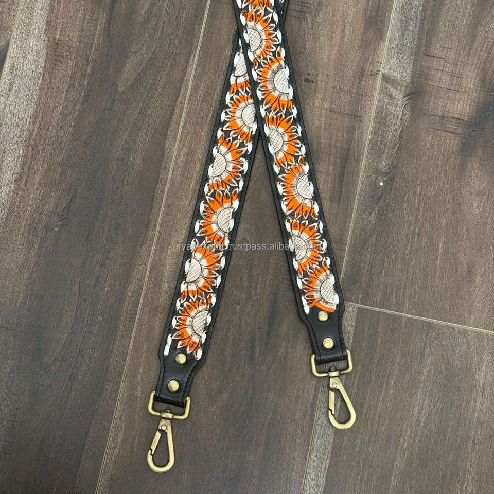 Personalized Replacement Purse Bag Guitar Strap Genuine Cowhide Leather Hand Tooled Crossbody 48" Long Replacement Camera Straps