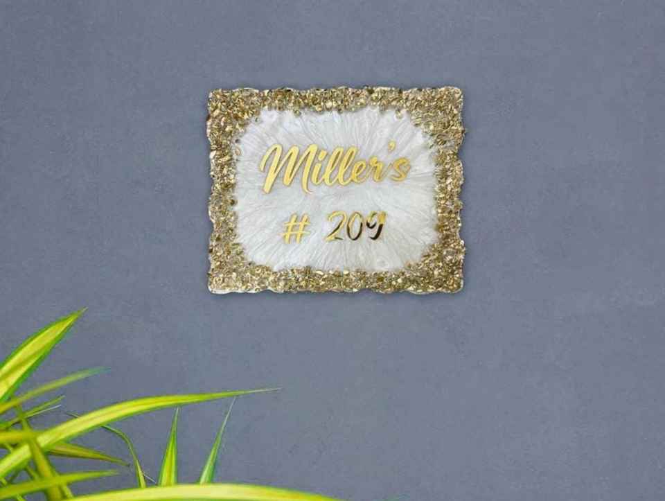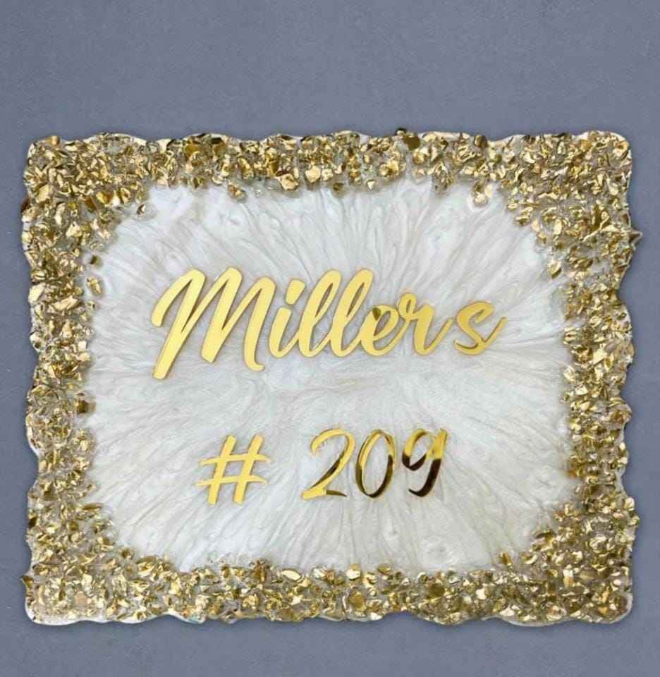 Resin, HDHMR Board and Golden Crystals on Cornermaterial
