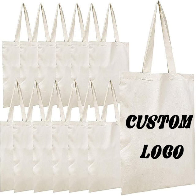 Personalized Reusable Cotton Tote Bags Promotional Blank Plain Canvas Bags with Custom Printed Logo