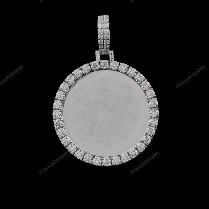 Personalized Round Shape Photo Memory Picture Pendant Free Engraving Gold Plated Moissanite Necklace for Men Women