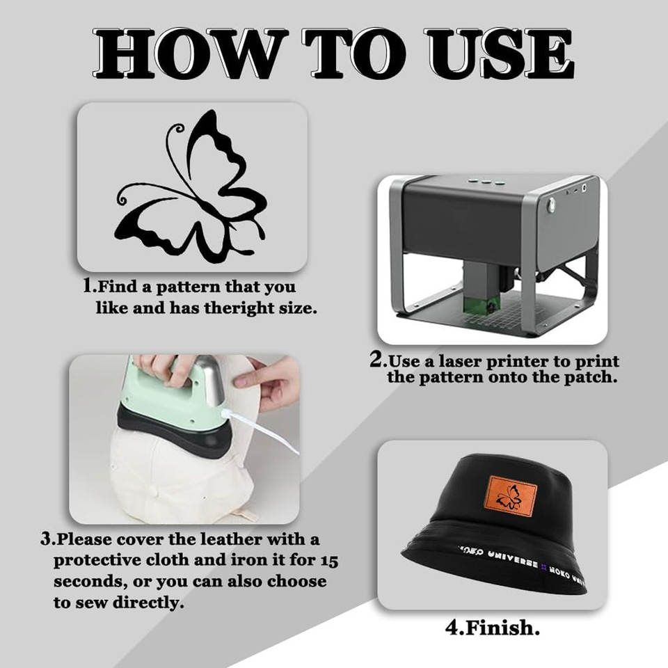 Personalized Shape Leather Patches Caps Twill Fabric Rustic Faux Leatherette Blanks Adhesive Iron On Heat Press Laser Engraving