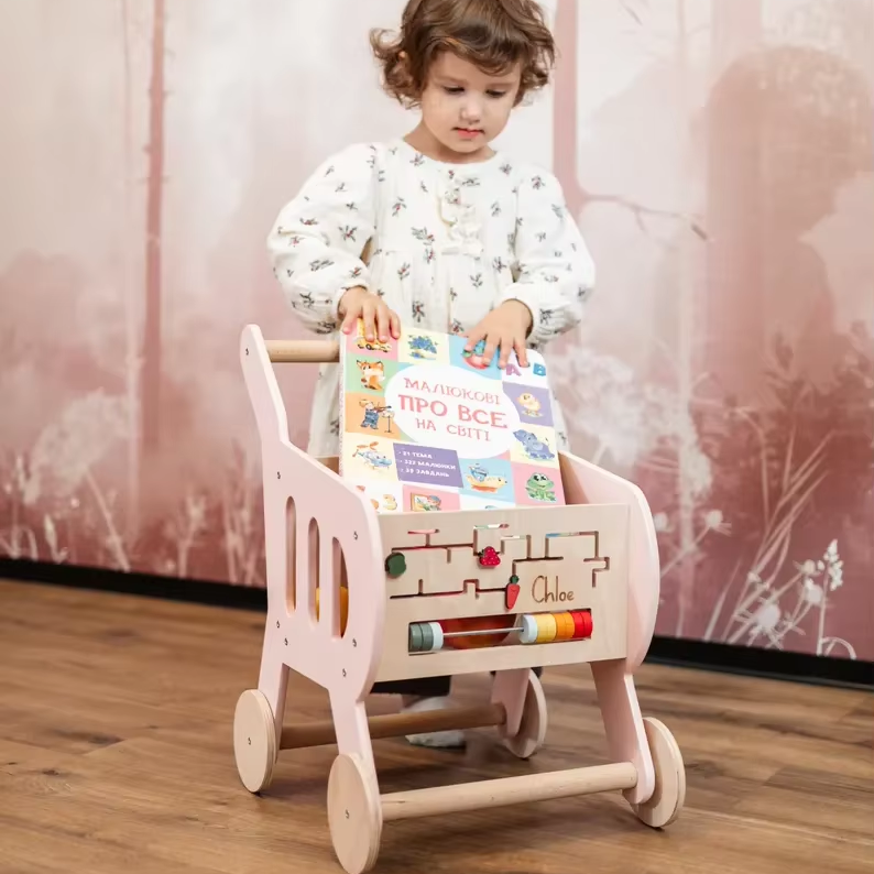 Personalized Shopping Cart Wooden Toy Toddler Learning Walker Pusher Toy Supermarket Toy