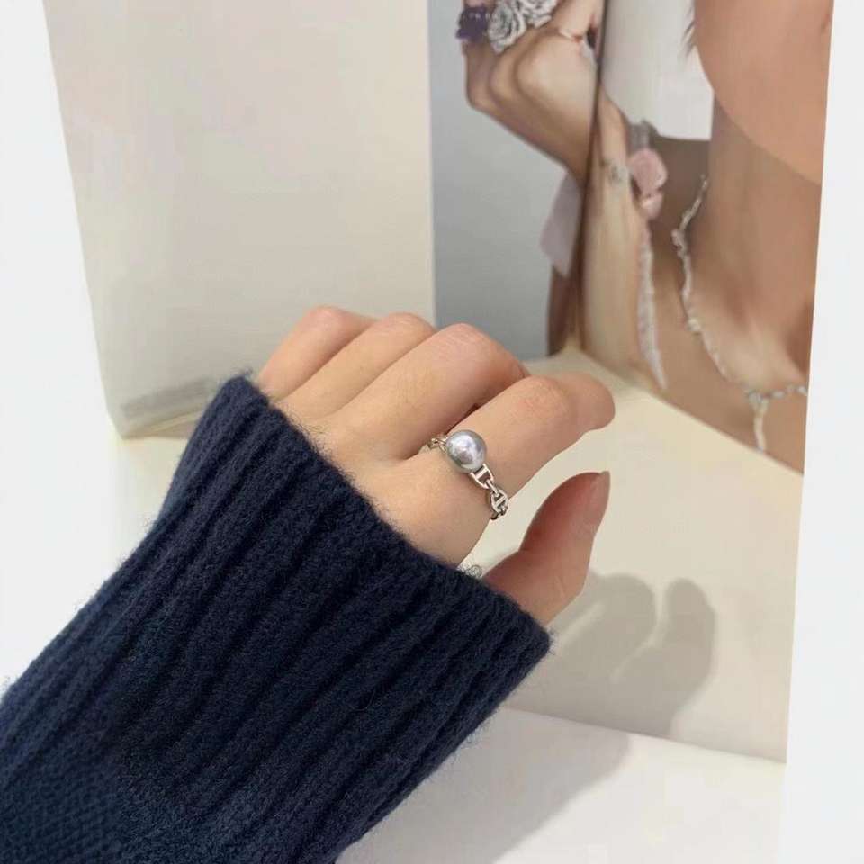 Personalized Simple Ring Design with Chain Opening Fashionable Pig Nose Niche Many Hemp Pearl Rings for Index Finger