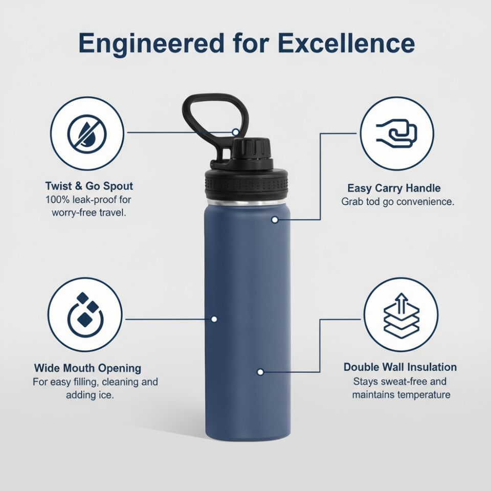Personalized Stainless Steel Sports Water Bottle Double Wall BPA Free Wide Mouth Insulated Bottle
