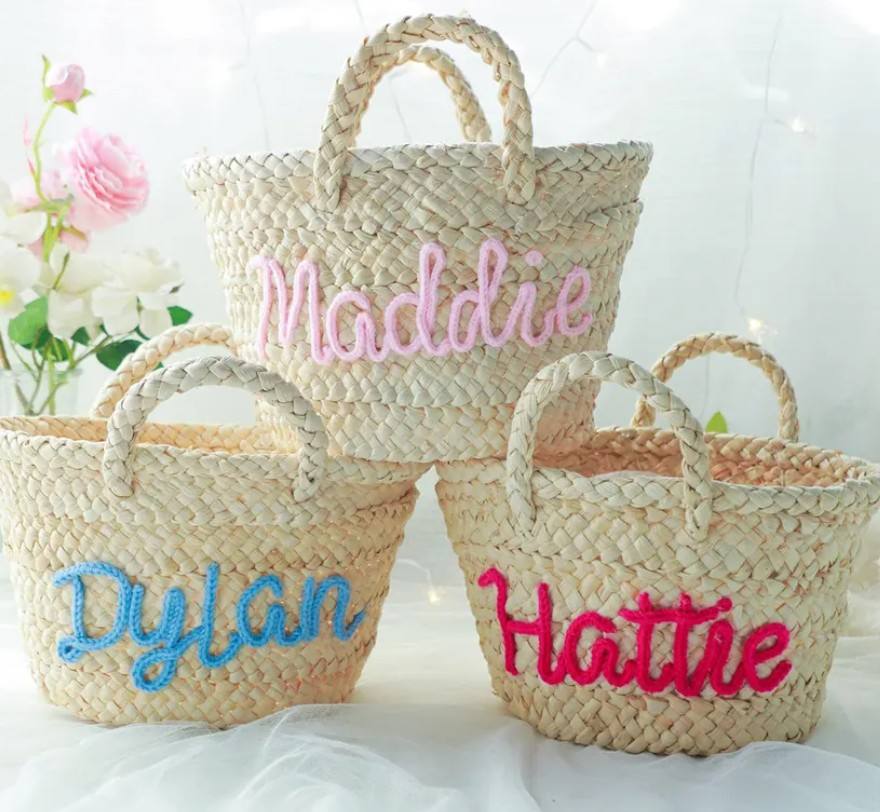 Personalized Straw Bridesmaid Handbag,Bridal Party Straw Bag,Custom Hand-Held Gift Basket,Bachlorette Party Beach Bag