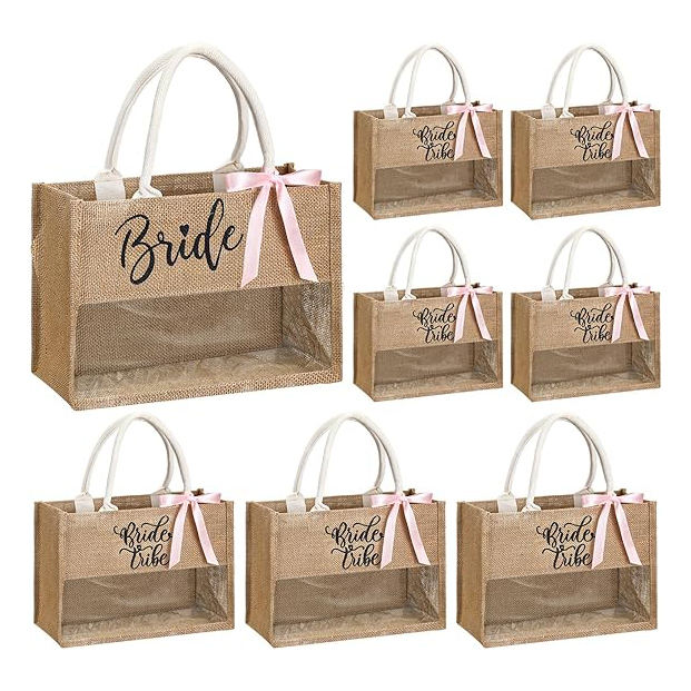 Personalized Transparent clear Window Fashion Exquisite Wedding Gift Girls Bachelorette Tote Beach Jute Bridal Bag