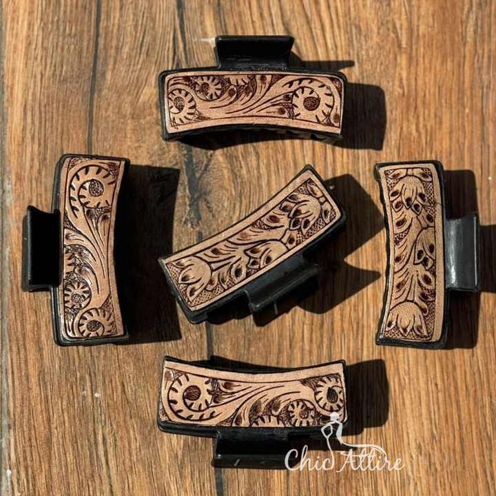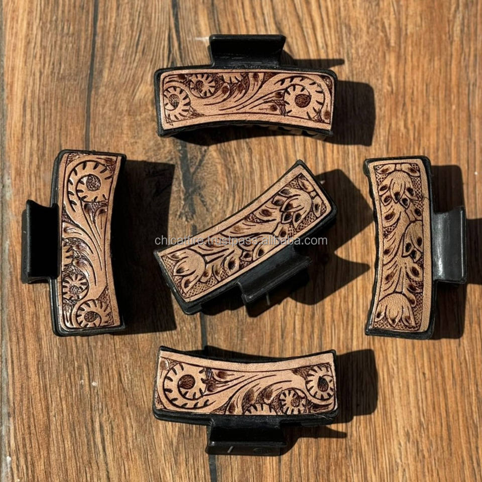 Product name:Hand Tooled Leather Women Hair Claw Clip