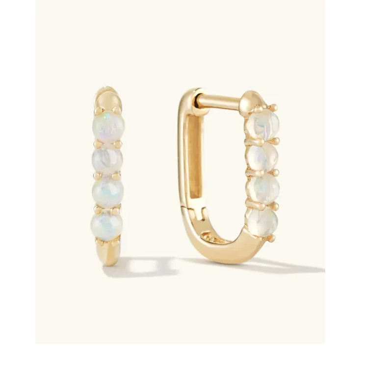 Personalized U Shaped 925 Sterling Silver Opal Earrings with Zircon Trendy Style for Parties and Weddings