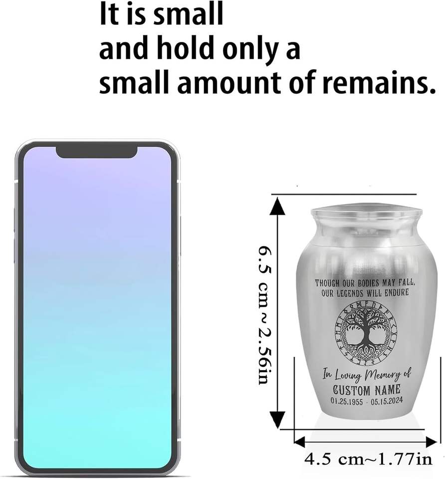Personalized Valhalla Viking Memorial Mini Urn Stainless Steel Decorative Keepsake Urn with Engraved Nordic Runes Custom Size