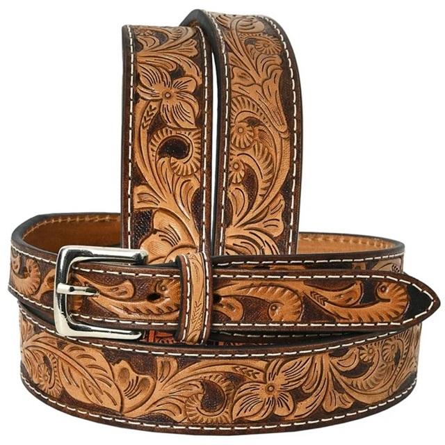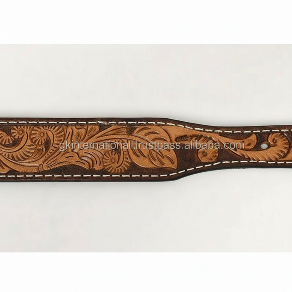 Personalized Wholesale supply men's western leather tooling belt hand carving and contrast stitching tooled leather belt