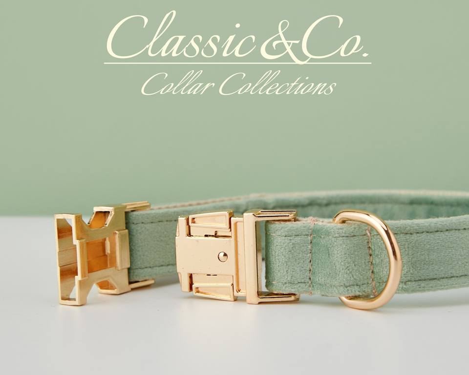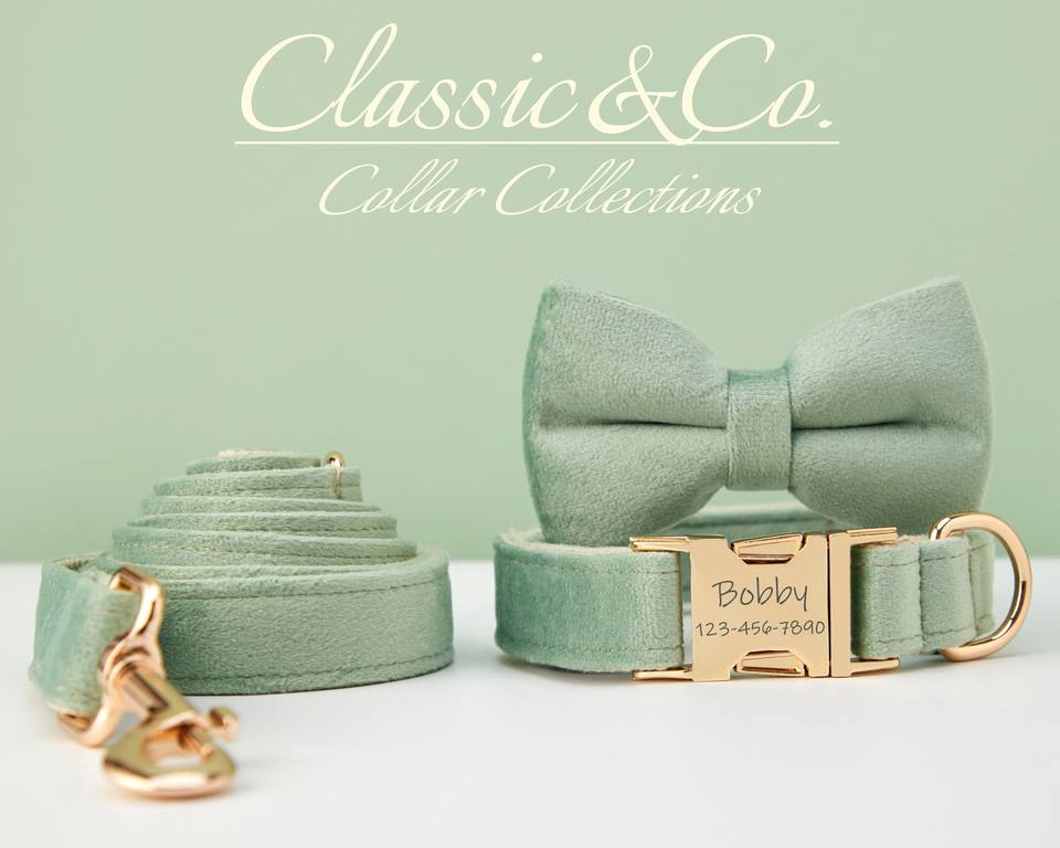 Personalized With Engraved Pet Name Metal Buckle,Sagegreen Veet Dog Collar And Leash Set With Bell And Bow,Free Shipping