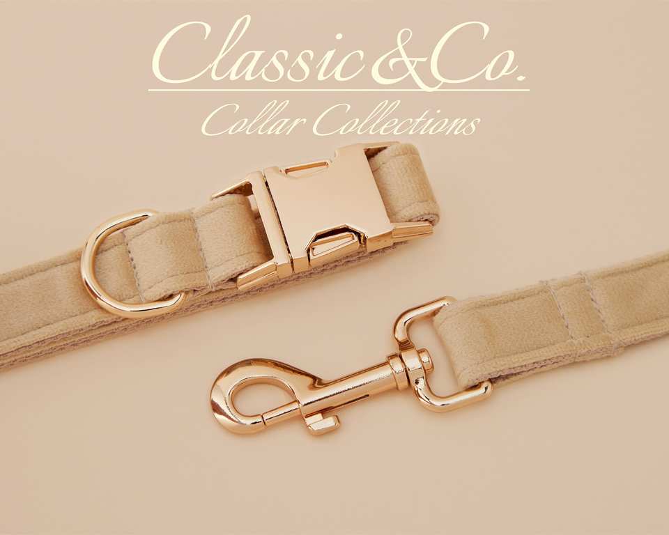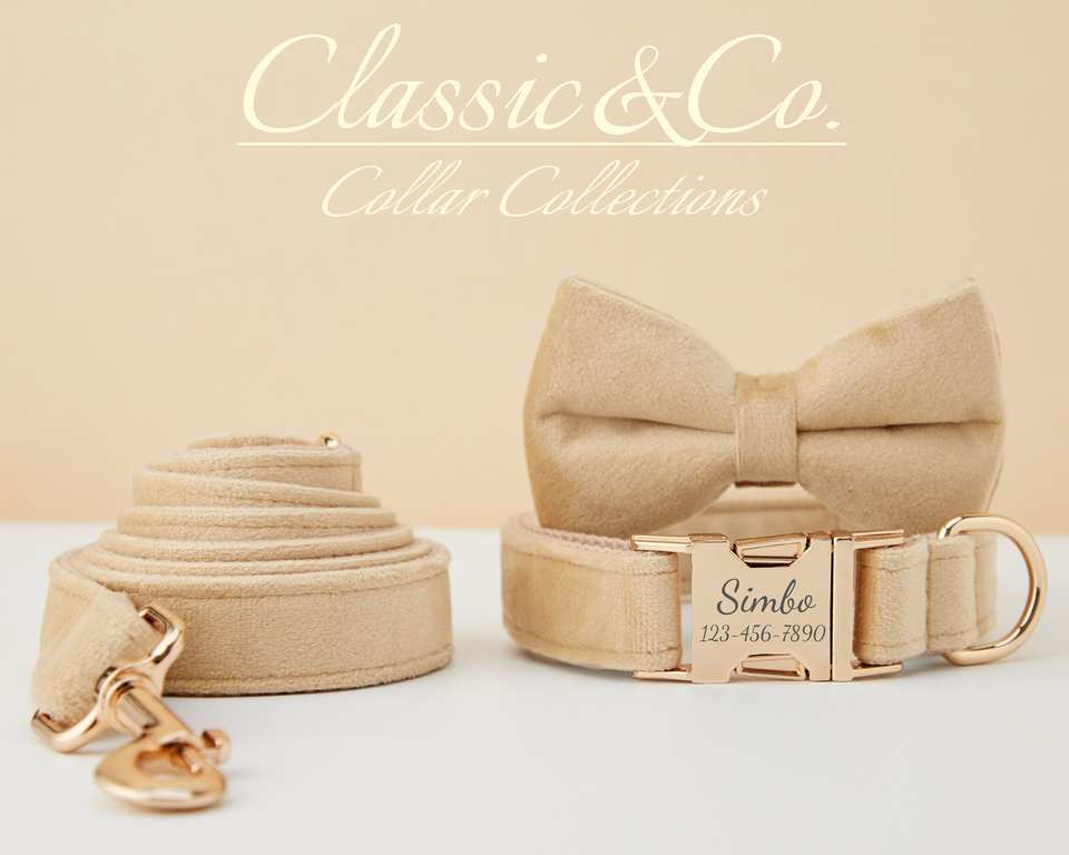 Personalized With Engraved Pet Name Metal Buckle,Beige Veet Dog Collar And Leash Set With Bell And Bow,Free Shipping