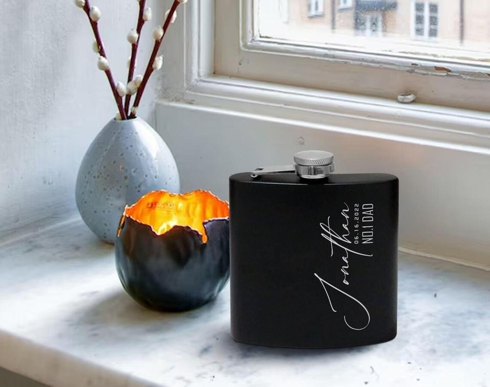 Personalized engraved hip flask black finished gift for dad stylish custom design perfect for father's day birthday or special