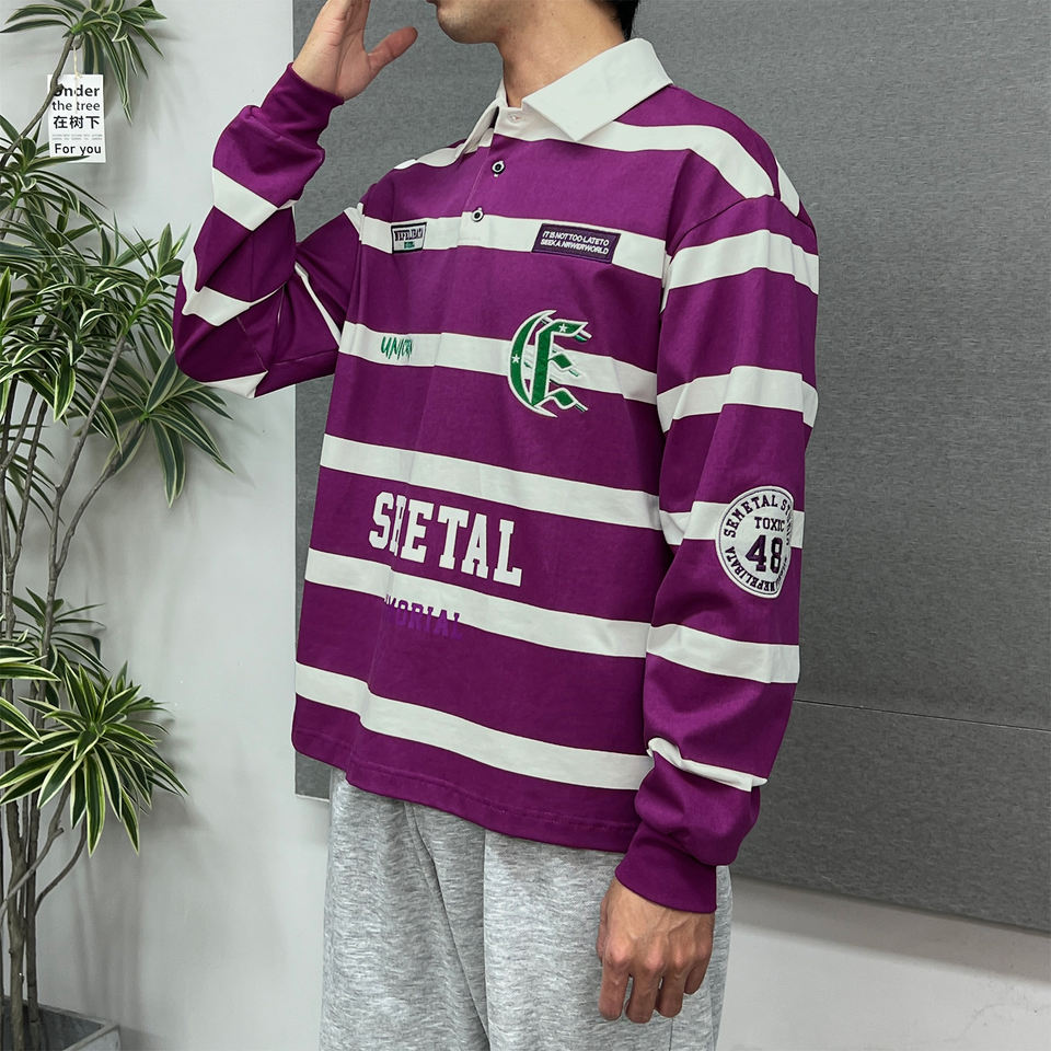 Personalizzate Graphic Drop Shoulder T-shirts Printed Oversized Button up t Shirt Custom Casual Long Sleeve Polo Shirt