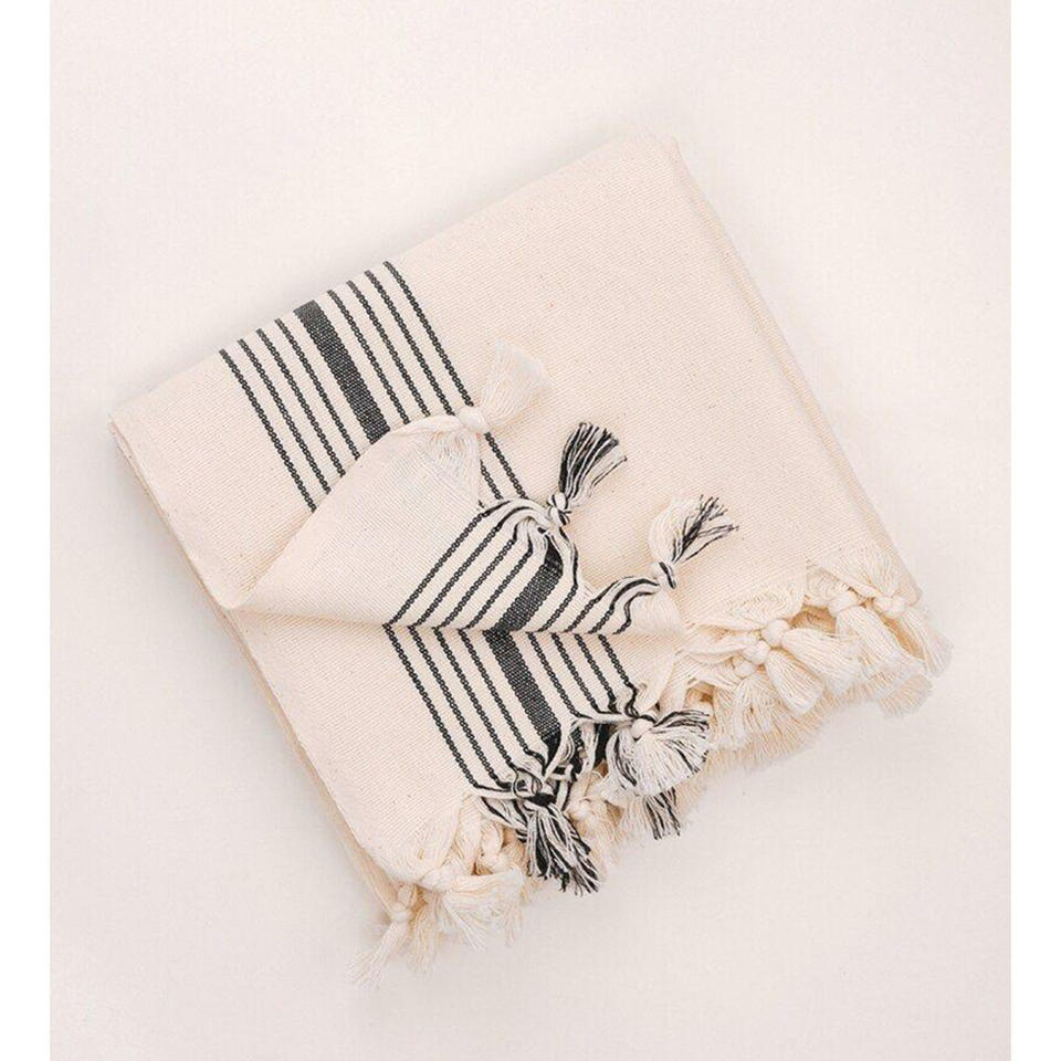 Peshtemal Hammam Bath Towel Muslin Cotton 90x180cm 350gr made in Turkiye Line Natural Black Color