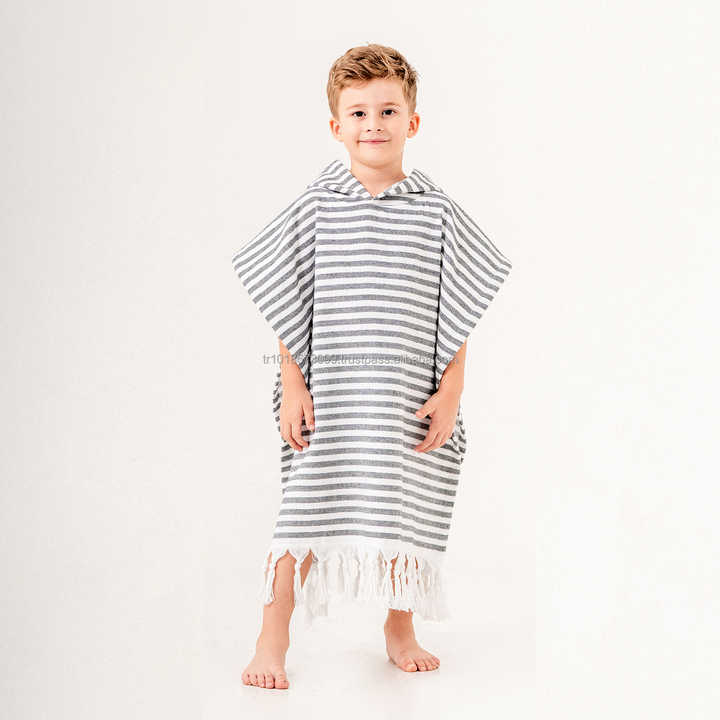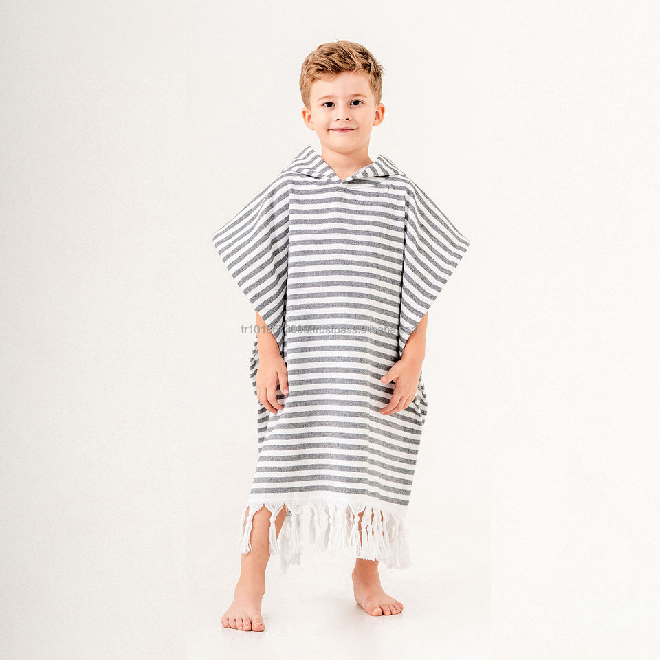 Pestemal Towel Poncho for Kids GREEN STRIPES Hooded Kids Poncho Collection Beach Towel 100% Cotton