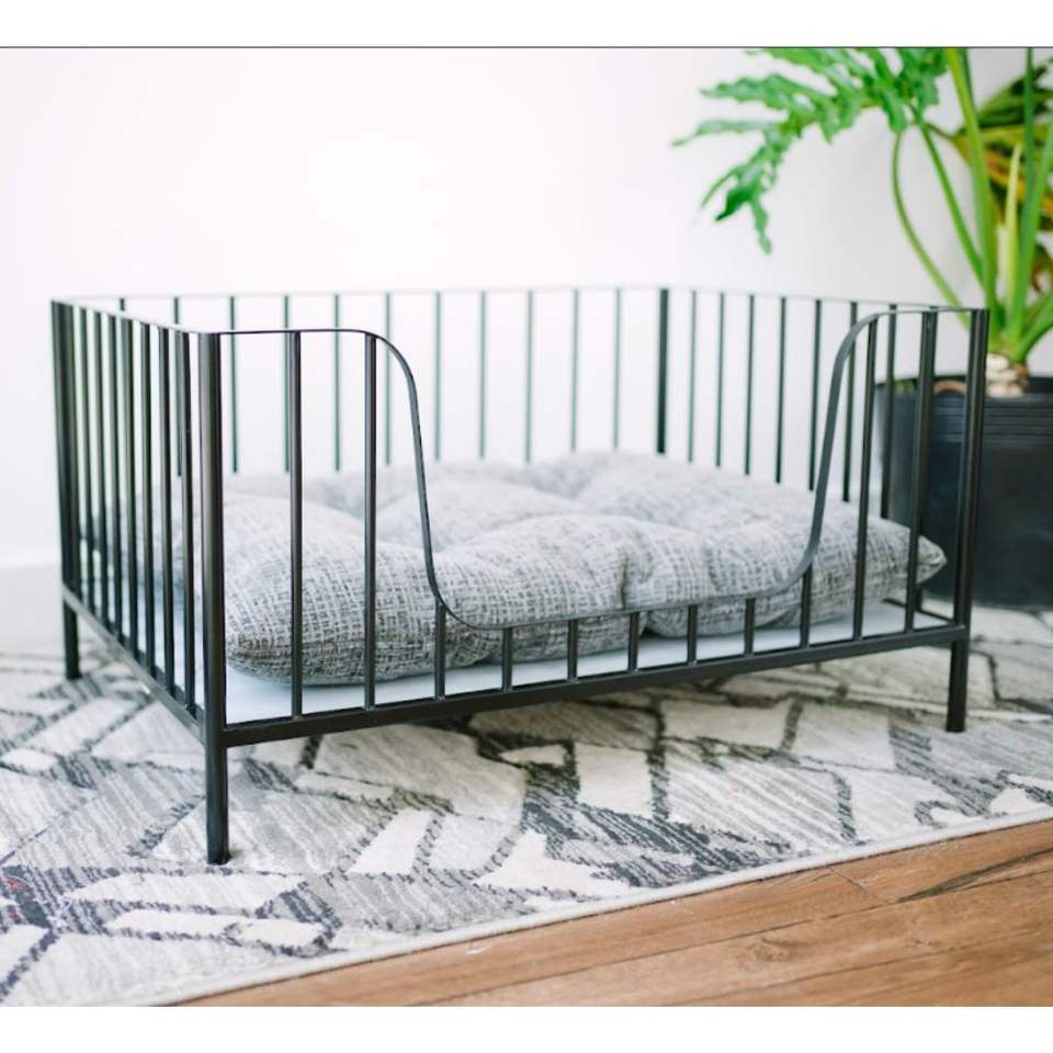 Modern Fashion Black NP-PP2A02 Pet Bed with Rails 28x20x15 Rectangle Solid Wood Board Washable Soft Mat Metal Frame Eco-Friendly