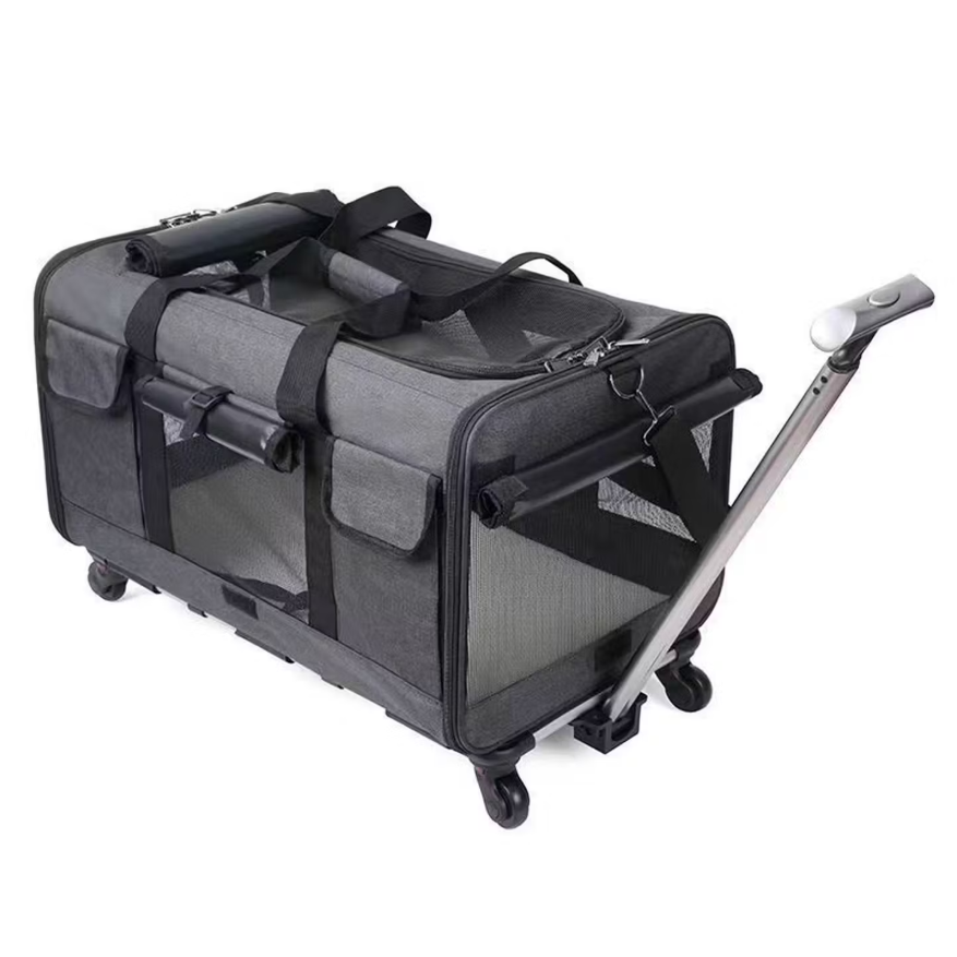 Pet Carrier with Wheels Airline Approved Rolling Pet Travel Bag with Telescopic Handle Breathable Mesh Windows Storage Pockets