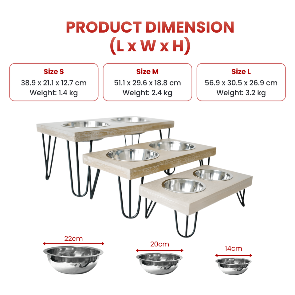 Elevated Dog Cat Feeder Acacia Wood Stand Stainless Steel Double Bowls