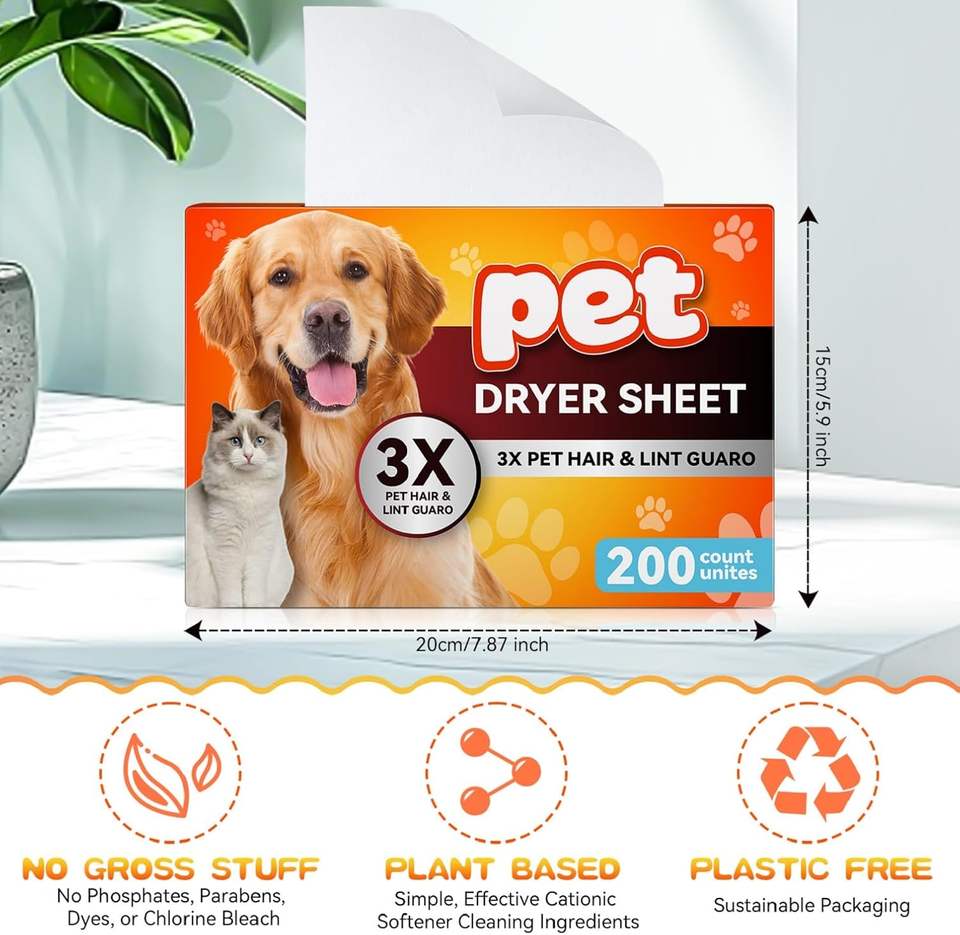 Pet Hair Remover for Laundry, Lint Dryer Sheets, 3 X Pet Hair Fighters, Reduces Static, Adds Softness(Unscented,200 Count)