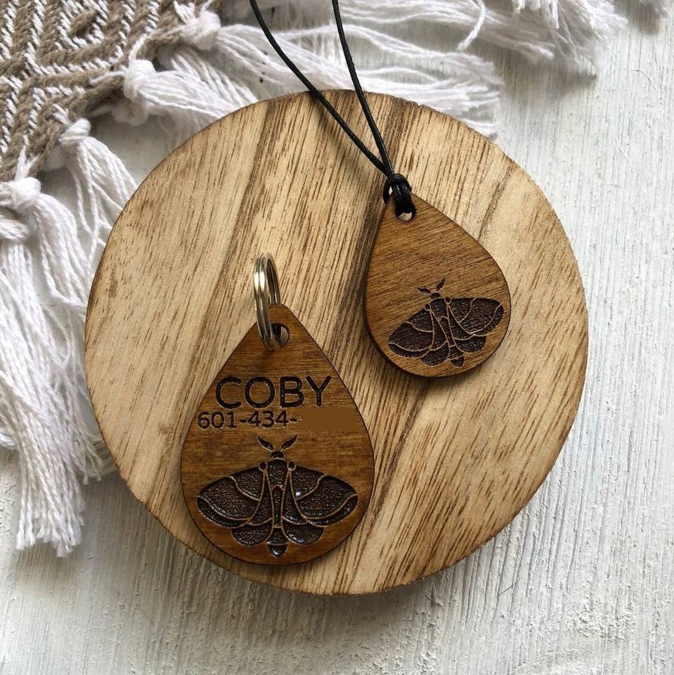 Pet ID Bank Tag Charms Cat and Dog Wood Identity Tags Wholesale in Blanks for Custom Name Engraving