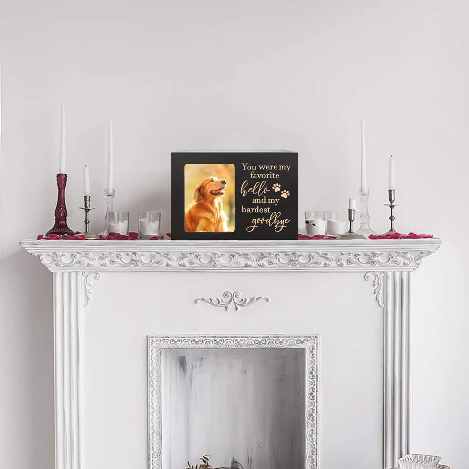 Wooden Pet Memorial Urn with Photo Frame Cremation Funeral Keepsake Memory Box for Dog or Cat Ashes