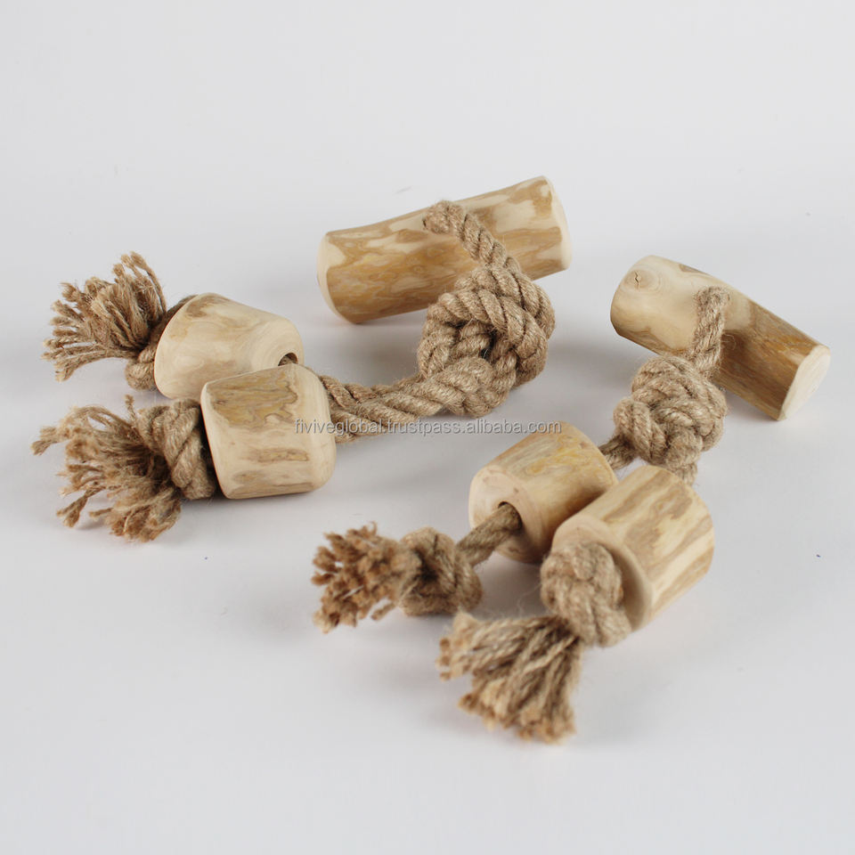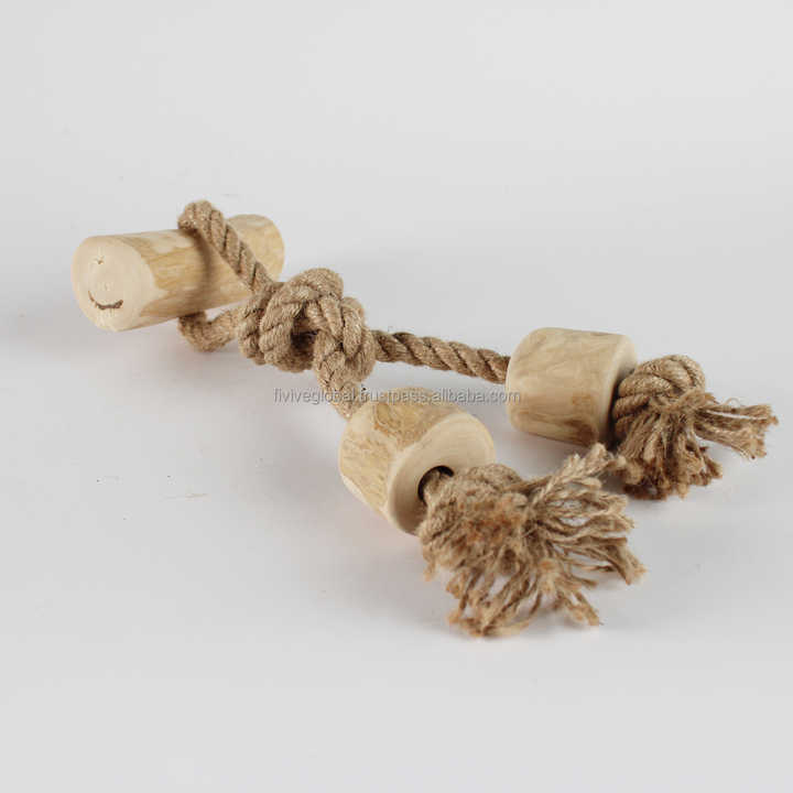 Pet Supply Eco-friendly Coffee Wood Triple Tug Toy For Dogs, Fun And Safe Gift For Holidays, ODM Factory In Vietnam, Low MOQ